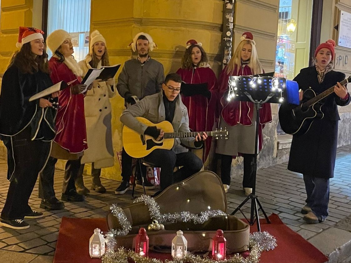Čarobni projekt u suradnji s Turističkom zajednicom grada Zagreba. Tijekom prosinca, naši talentirani polaznici, obučeni u božićne kostime, izvodili su tradicionalne božićne pjesme na različitim lokacijama u centru grada. Njihove izvedbe donijele su toplinu i svečanu atmosferu, potičući prolaznike na zajedničko pjevanje i slavlje blagdanskog duha.